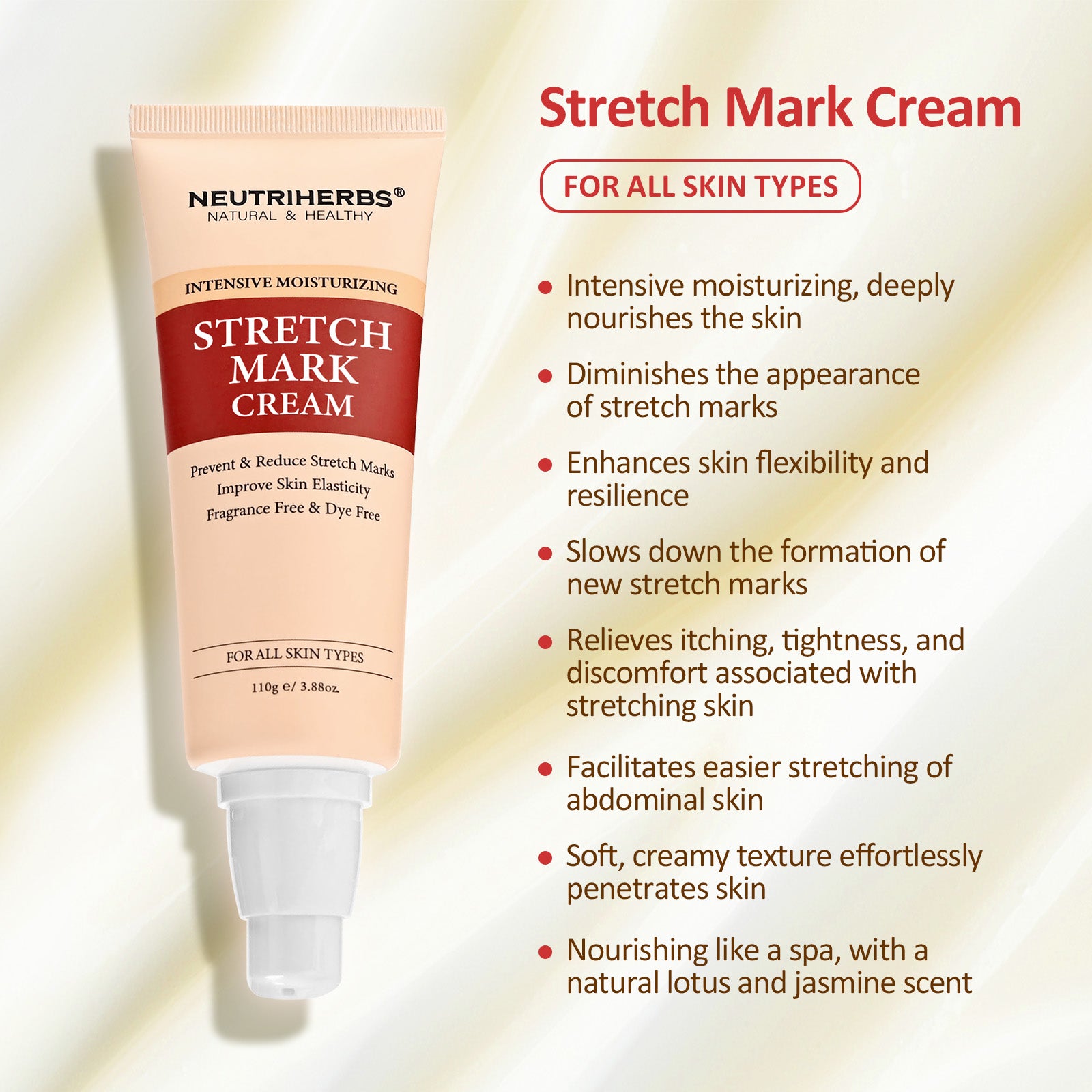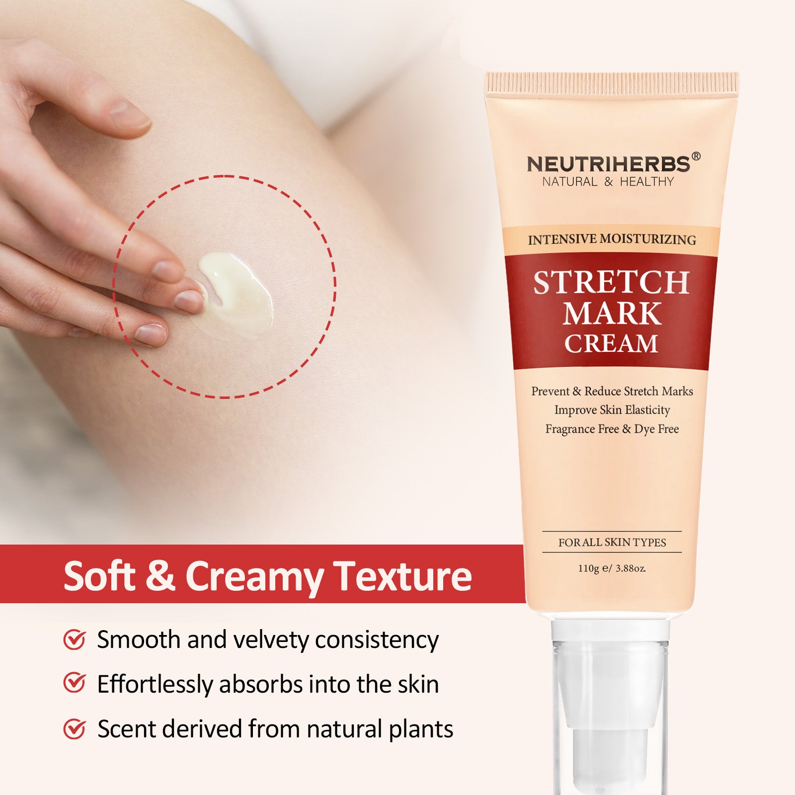 Neutriherbs gentle stretch mark cream that addresses stretch marks caused by pregnancy and weight fluctuations, reduce the look of stretch marks and helps prevent the look of future stretch marks. While helps produce collagen to improve skin elasticity and allow skin to stretch more easily. This non-greasy lotion is ideal for all over body use, in place of your regular moisturizer.