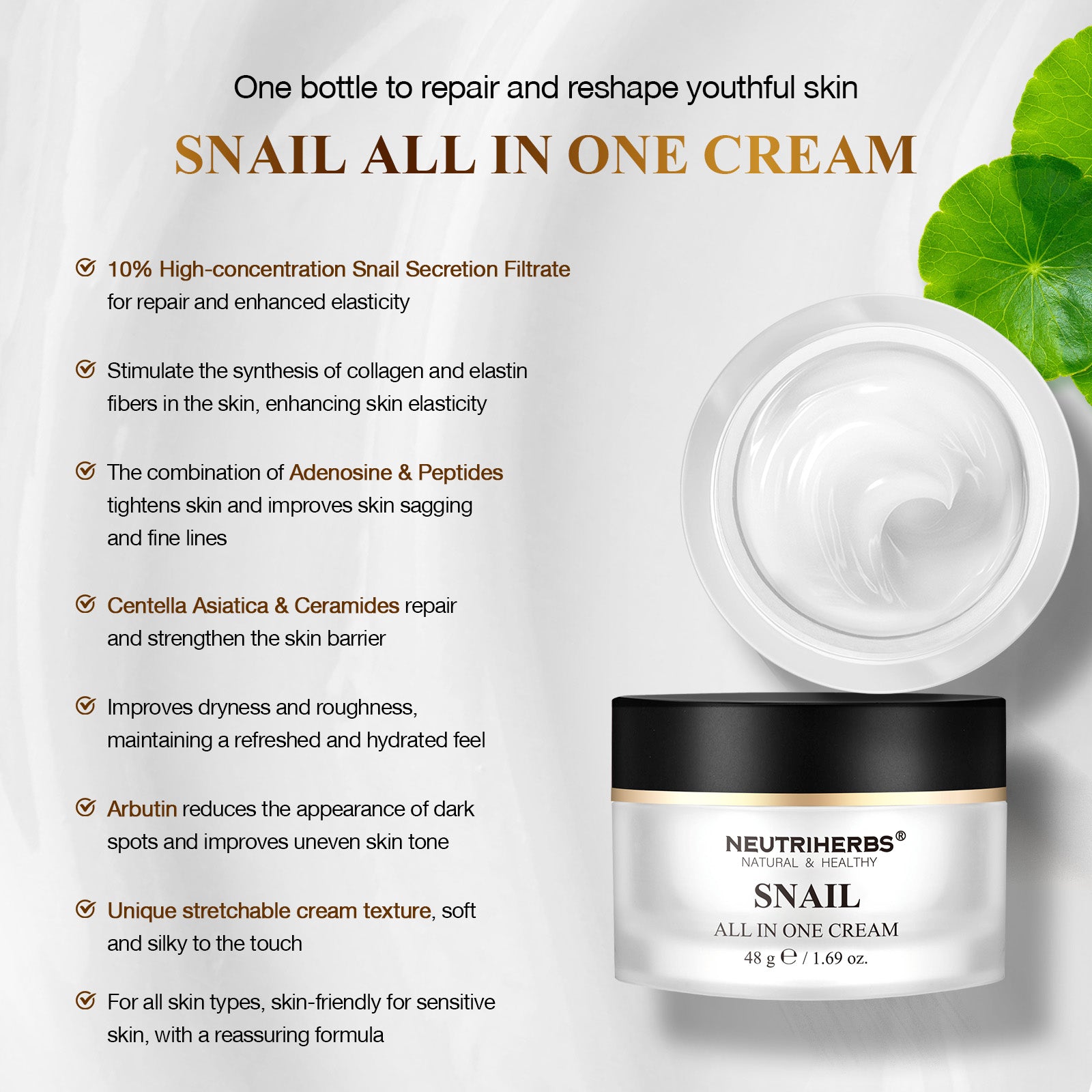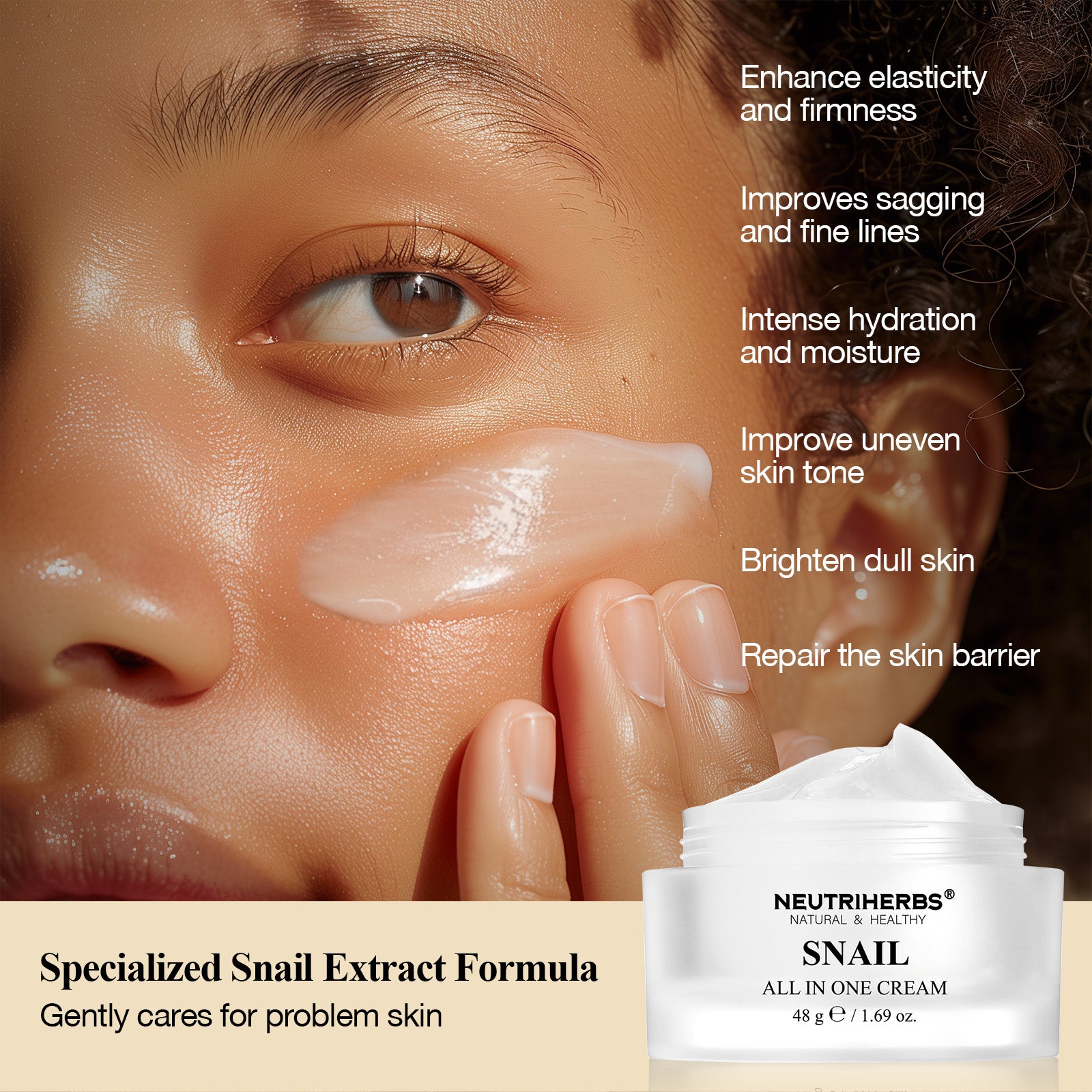 The Best All In One Snail Mucin Cream For Anti-Aging And Skin Repair | 48g e / 1.69oz