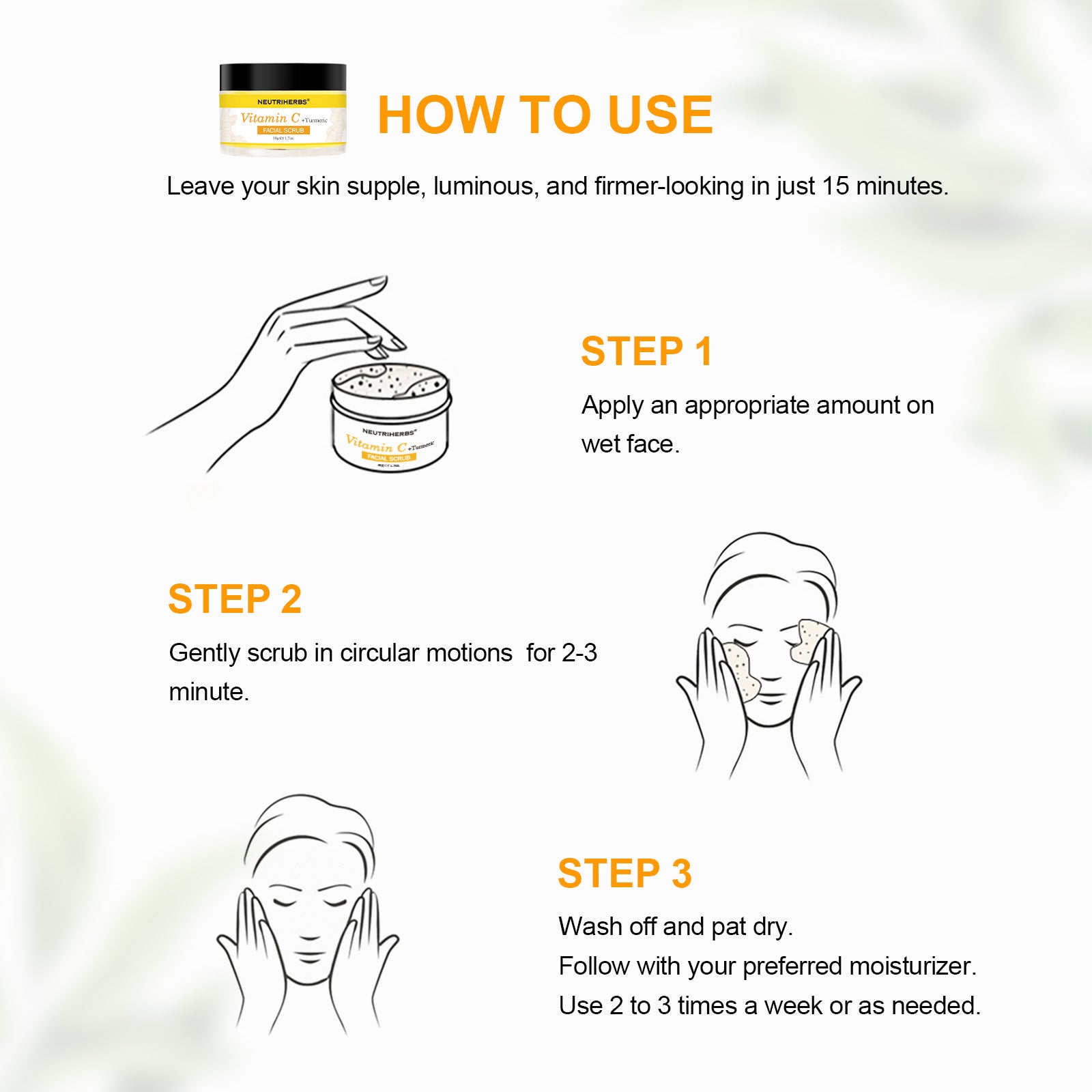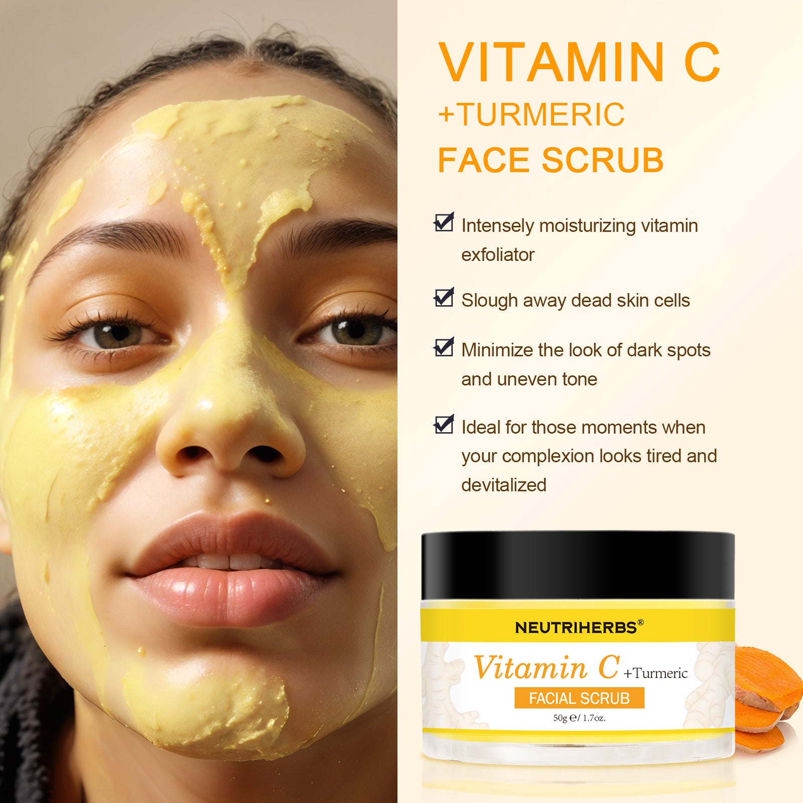 Neutriherbs Vitamin C Turmeric Exfoliating Glow Facial Scrub For Skin Lightening is an intensely moisturizing vitamin exfoliator to slough away dead skin cells, minimize the look of dark spots & uneven tone, and reduce the appearance of signs of aging, such as dull skin or dryness.